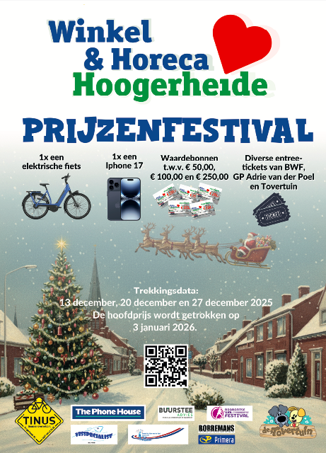 Vanaf 1 december start het Prijzenfestival van het Winkel- en Horecahart Hoogerheide. Wat moet je doen om kans te maken op mooie prijzen?